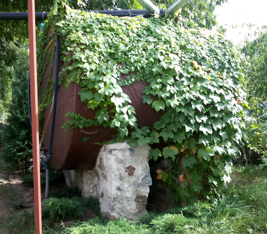 Дівочий виноград (плющевидний, триостренний) форма Віча / Культури в контейнерах, сіянці і живці для щеплення / Від alexnew Бочька для води увитая девичим виноградом