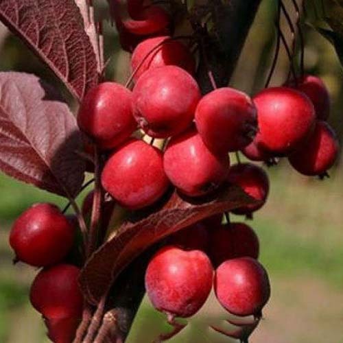 Опис: Яблуня плакуча – невелике, декоративне дерево зі спадаючою формою крони, на штамбі заввишки 1.5-2.5 м з червоним листям і рожевими квітками, які під час цвітіння, ніби килимком, вкривають все деревце. Згодом з’являються маленькі декоративні червоні плоди, які дозрівають у вересні. Яблуня плакуча стане гарним доповненням вашого саду.